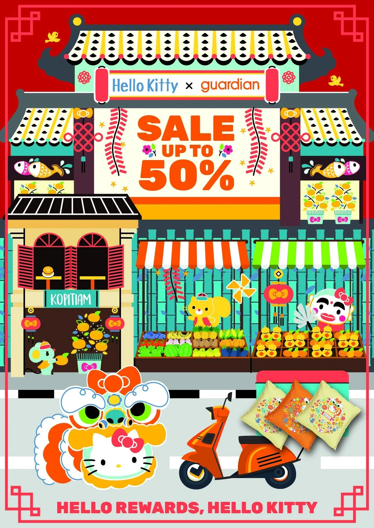It was also through Guardian that I got to play around with character licensing and illustration with guidance from Sanrio for the project "Hello Kitty X Guardian" from December 2017 - February 2018.