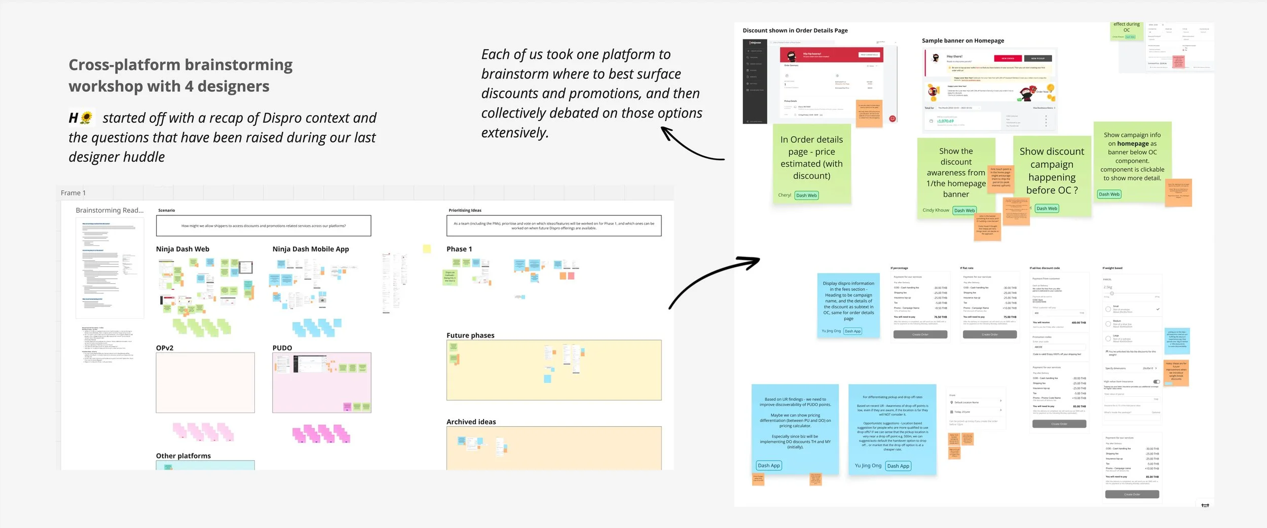 Before diving into execution, I encouraged H🌻to kickstart a cross-platform brainstorming workshop with our design team of 3. The goal was to map out how shippers might access discounts and promotions consistently across all shipper-facing products, which are owned by separate designers, and then identify where awareness or urgency could break down.