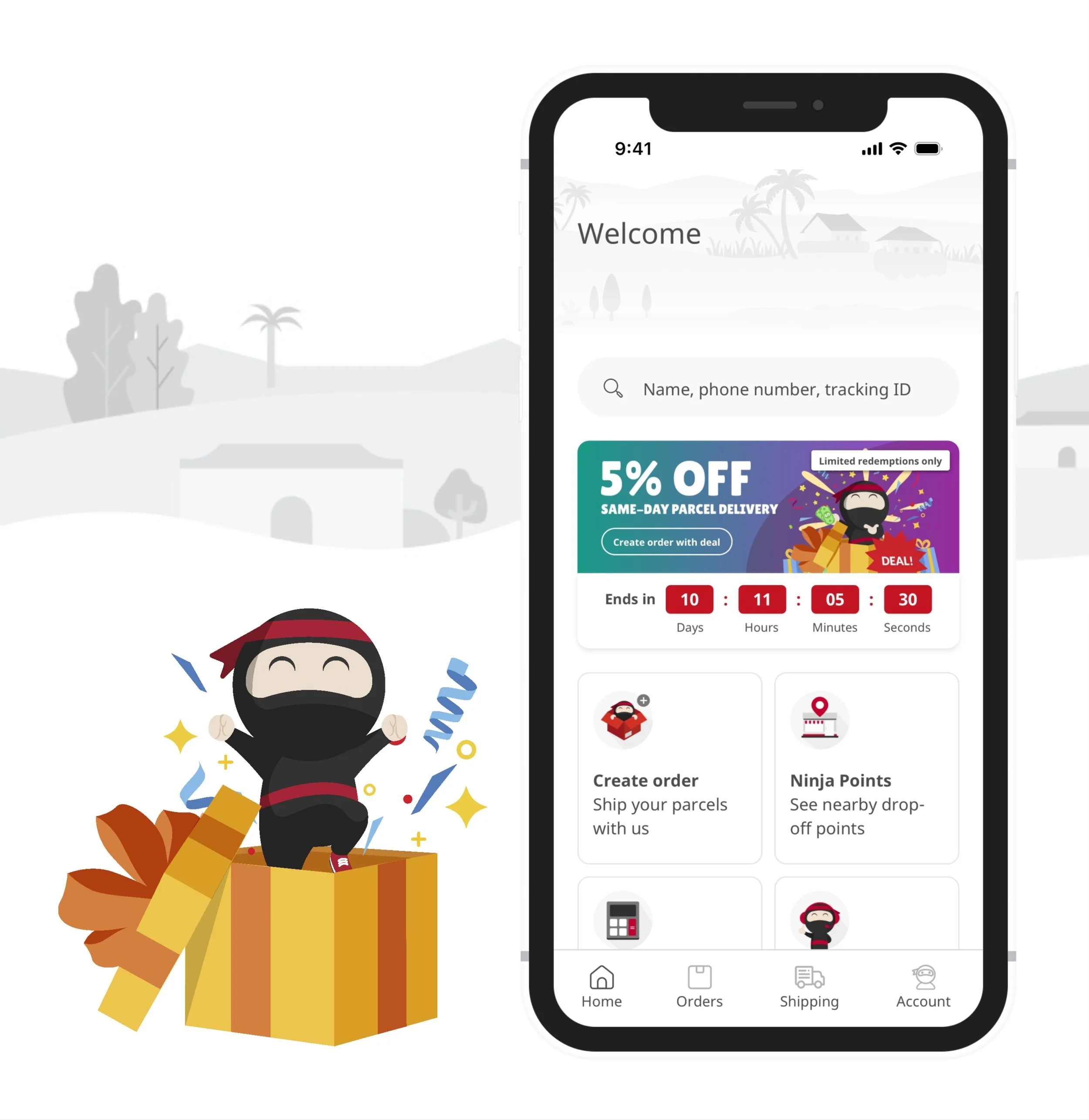 Ninja Dash Web & Mobile App - homepage, order creation, post-checkout journeys.