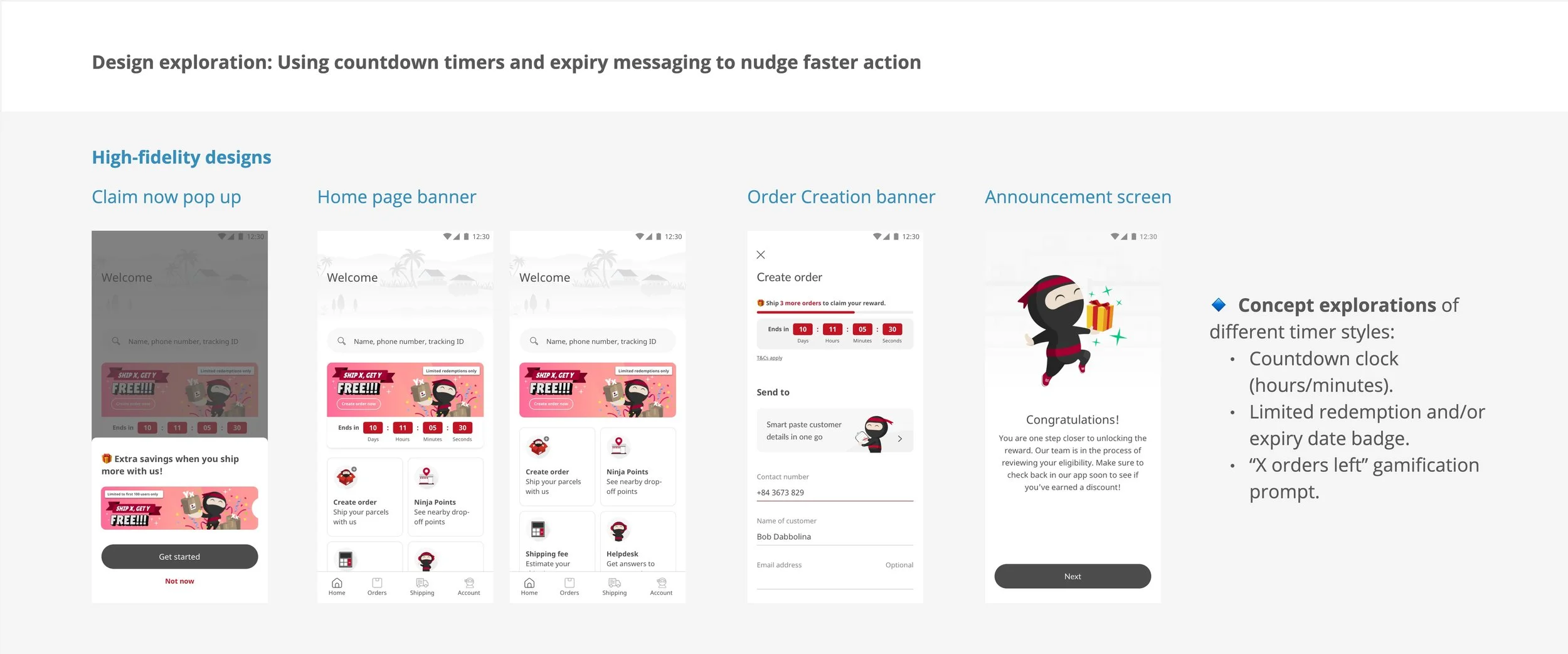We explored using countdown timers and expiry messaging to nudge faster action. Engineers raised an important caveat: